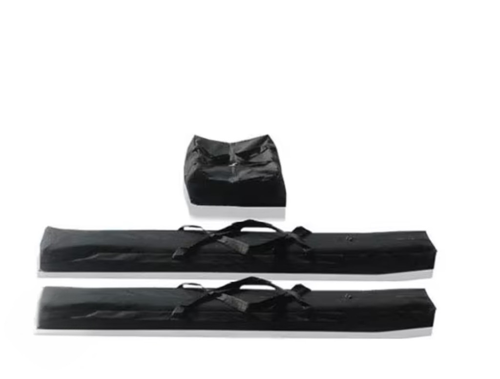 Ezek a kiváló minőségű táskák, amelyek 480 g/m² Oxford szövetből készültek, ideálisak a parti sátrak tárolására és szállítására. A hosszúkás táskák az acélcsövek és rudak, míg a téglalap alakú táskák a ponyvák és kisebb alkatrészek csomagolására szolgálnak. Minden táskát kifejezetten a sátorelemek szállítására terveztek, erős cipzárral, valamint víz- és szennyeződéstaszító bevonattal.Pontosan illeszkedik a következő méretekhez: